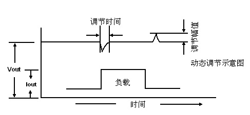 負(fù)載電流有階躍時,直流變換器需要進(jìn)行調(diào)節(jié)的時間和幅值。