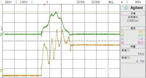 目前測(cè)試了一下,電流達(dá)到350A,瞬間30us左右,如果前面是IGBT開關(guān)用,擔(dān)心損壞