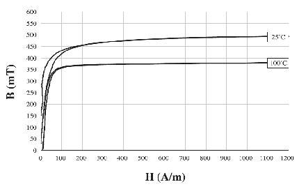 我們?cè)谠O(shè)計(jì)反激變壓器以及一些儲(chǔ)能電感時(shí),設(shè)定最大磁通量Bm尤為關(guān)鍵。由于電源起機(jī)和短路保護(hù)時(shí)最大磁通量Bm大于穩(wěn)態(tài)工作時(shí)的Bm,所以我設(shè)定變壓器的Bm時(shí)需要預(yù)留足夠的裕度。如圖 1所示,磁芯溫度為100℃曲線可知Bm=0.35T時(shí)磁芯接近飽和,所以出于對(duì)電源起機(jī)、輸出過流和短路等極限情況考慮,鐵氧體P4材質(zhì)的變壓器的穩(wěn)態(tài)Bm一般小于0.25T。