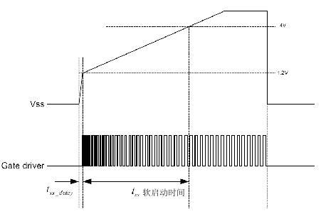 電源的軟啟動(dòng)對(duì)降低場(chǎng)效應(yīng)管和輸出二極管的尖峰電壓和尖峰電流有很大幫助,從而降低了其電壓應(yīng)力和電流應(yīng)力。但是對(duì)于LLC諧振電源來說,軟啟動(dòng)對(duì)電源起機(jī)的可靠性非常關(guān)鍵;因?yàn)長(zhǎng)LC電源的IC是通過高頻掃描的方式啟動(dòng)的。如圖 3所示在IC啟動(dòng)時(shí)驅(qū)動(dòng)PWM頻率會(huì)從設(shè)定的最高頻率開始慢慢恢復(fù)正常頻率,恢復(fù)時(shí)間也就是軟啟動(dòng)時(shí)間。在此期間電源工作在不穩(wěn)定狀態(tài),軟啟動(dòng)時(shí)間越長(zhǎng),啟動(dòng)越安全;但軟啟動(dòng)時(shí)間過長(zhǎng)也會(huì)對(duì)電源帶容性負(fù)載能力和起機(jī)時(shí)間造成影響。