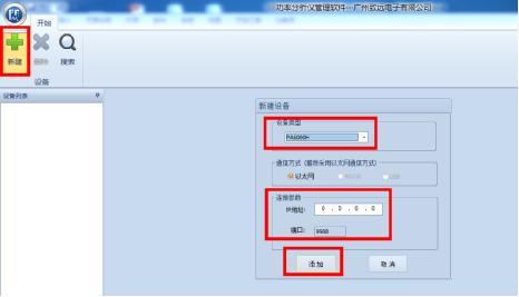 第一打開軟件,新建一個(gè)設(shè)備類型,選擇對應(yīng)機(jī)器型號(hào),如僅進(jìn)行離線分析,則無需設(shè)置IP信息;