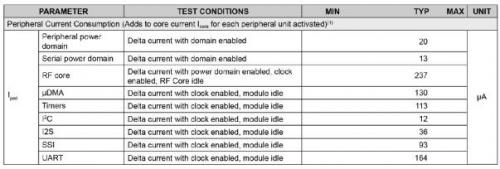 圖2顯示了TI CC2650MODA系列中可用外設的功耗。盡管各種設備消耗的電流非常小—僅幾十或幾百微安的程度—但是禁用這些設備可能會產生重大影響。如果不需要進行串行連接,則可以節(jié)省總共318μA。雖然可能看起來不太多,但是這個電流變化會對電池壽命產生重大影響。