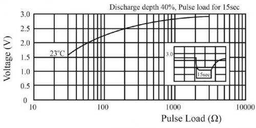 物聯(lián)網應用使用脈沖電流。處理器和傳感器可以抽取幾毫安的短脈沖電流,然后切換到低功耗模式并維持很長時間。使用脈沖電流會導致輸出電壓下降。圖3顯示即使2mA的脈沖負載也會使CR2032的輸出從3V下降到2.2V左右。