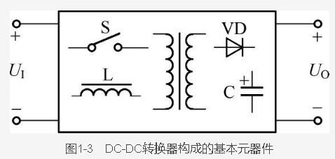DC-DC轉(zhuǎn)換器是開(kāi)關(guān)電源中最常見(jiàn)的一種,由二極管,三極管,電容器等構(gòu)成。DC-DC轉(zhuǎn)換器就是重復(fù)通斷開(kāi)關(guān),把直流電壓或電流轉(zhuǎn)換成高頻方波電壓或電流,再經(jīng)整流平滑變?yōu)橹绷麟妷狠敵觥C-DC轉(zhuǎn)換器室友半導(dǎo)體開(kāi)關(guān)、整流二極管、平滑濾波電抗器和電容等基本元件組成。當(dāng)輸入、輸出間需要進(jìn)行電氣隔離時(shí),可以采用變壓器,把高頻方波電壓通過(guò)變壓器傳送到輸出側(cè)。構(gòu)成DC-DC轉(zhuǎn)換器的基本元器件如下圖1所示。圖中UI為整流后不穩(wěn)定的直流電壓;UO為經(jīng)過(guò)斬波的輸出電壓;S為開(kāi)關(guān)。