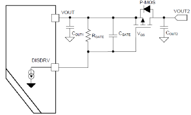 從上圖我們可以看到,所需要的外部器件很少。該芯片還提供一個(gè)單獨(dú)的 pin 腳 DIS來(lái)驅(qū)動(dòng)負(fù)載輸出端的外部 FET(P-FET),在設(shè)備關(guān)斷或者輸出短路時(shí)它能完全斷開輸入與輸出的連接。啟動(dòng)時(shí),通過內(nèi)部電流源來(lái)控制外部 P-FET 開關(guān)。在關(guān)斷或者輸出短路時(shí),將輸出與輸入側(cè)隔離,如下圖: